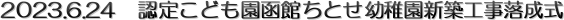 2023.6.24 認定こども園函館ちとせ幼稚園の完成を祝して落成式が執り行われました。 落成式の最後には 北海道キリスト教学園 井石理事長 様から感謝状を賜りました。 今回、栄えある授賞を頂けた事、皆さまのお力沿いのお陰です。 あらためて御礼申し上げます。 |